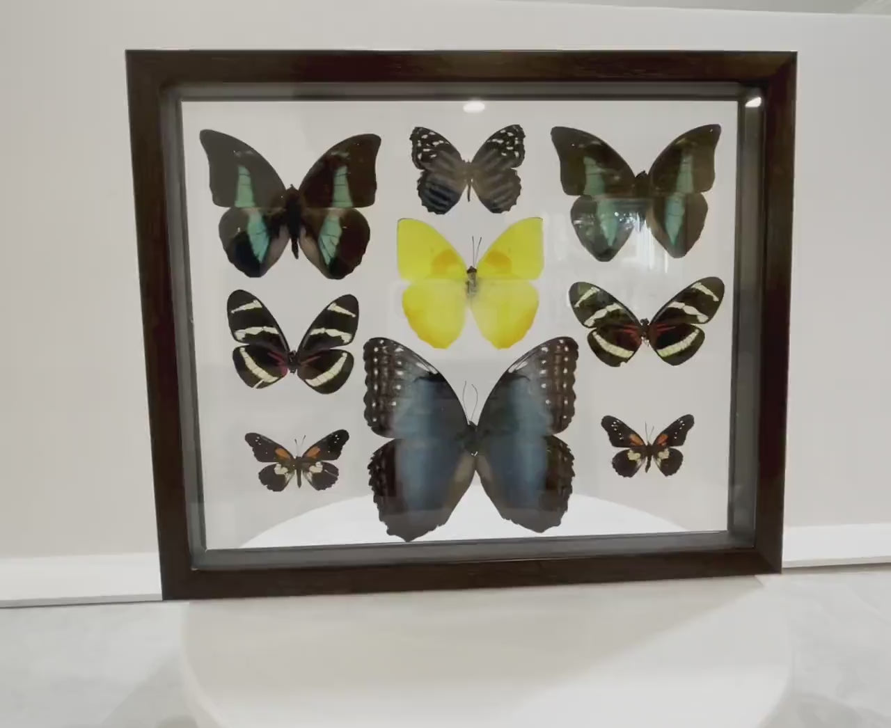Real framed butterflies, mounted with glass on both the front and back so you can see all the beauty these creatures possess.
