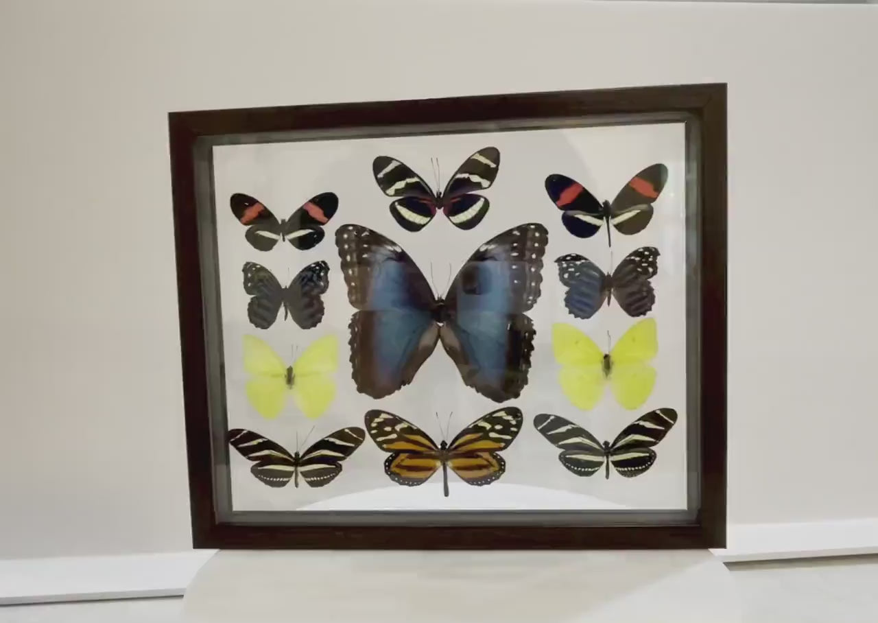 Real framed butterflies, mounted with glass on both the front and back so you can see all the beauty these creatures possess.